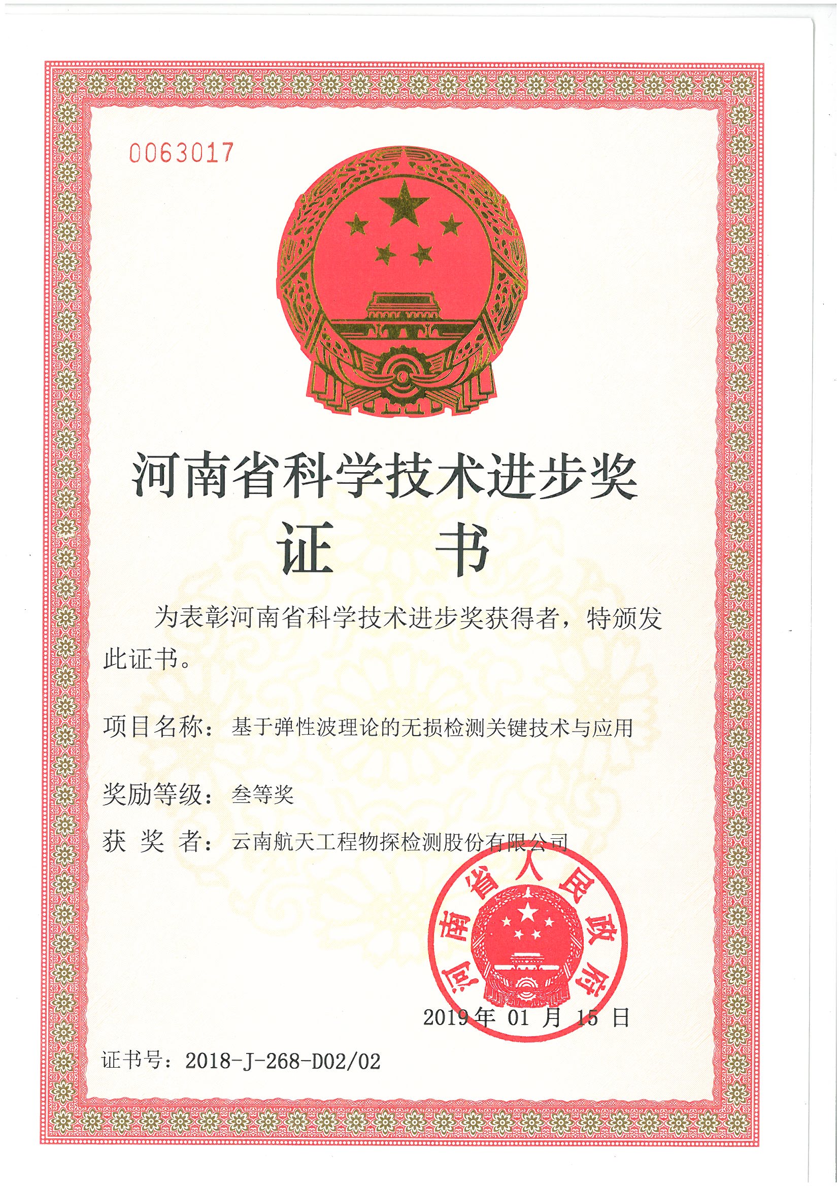 河南省科技進(jìn)步一等獎(jiǎng)