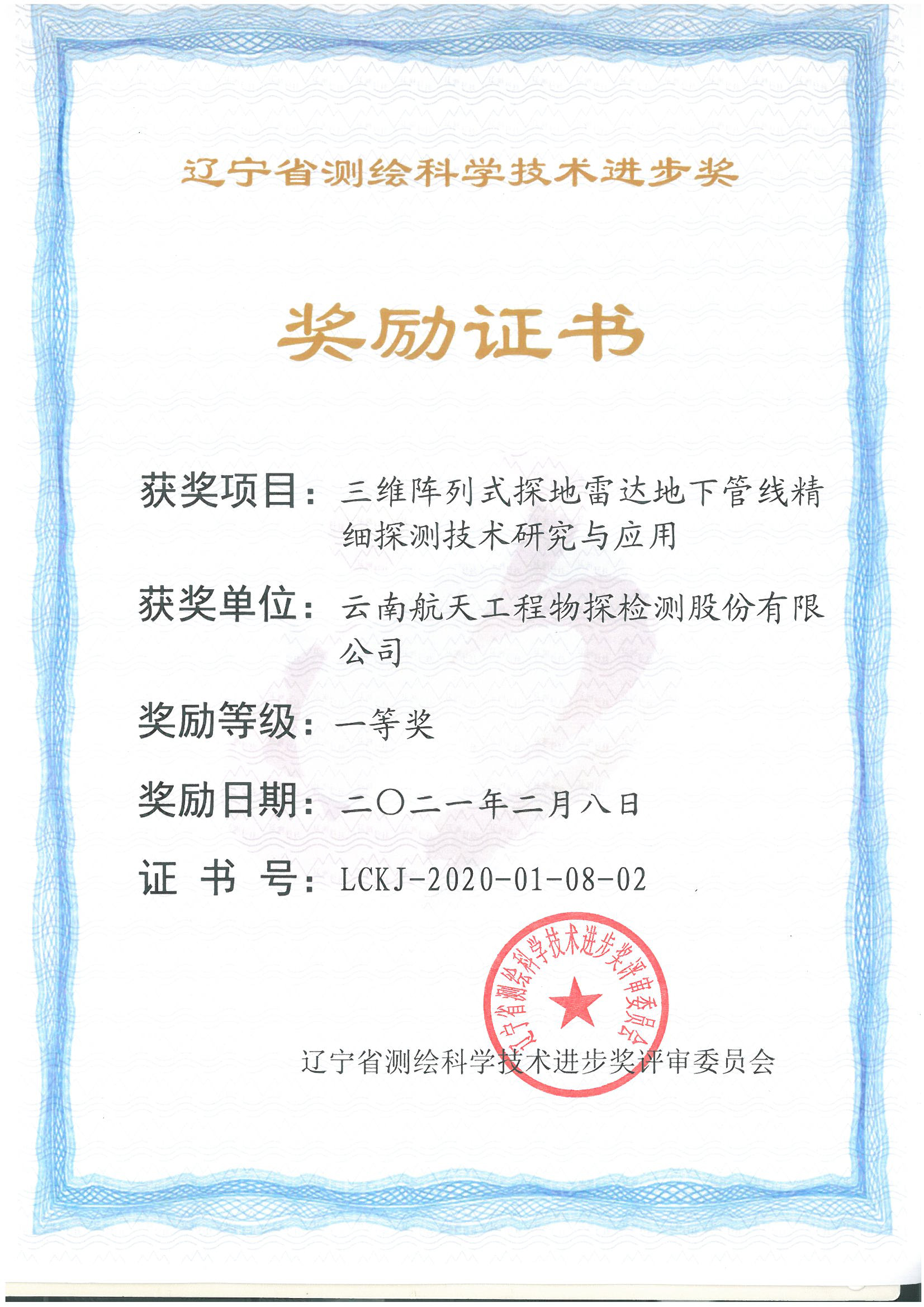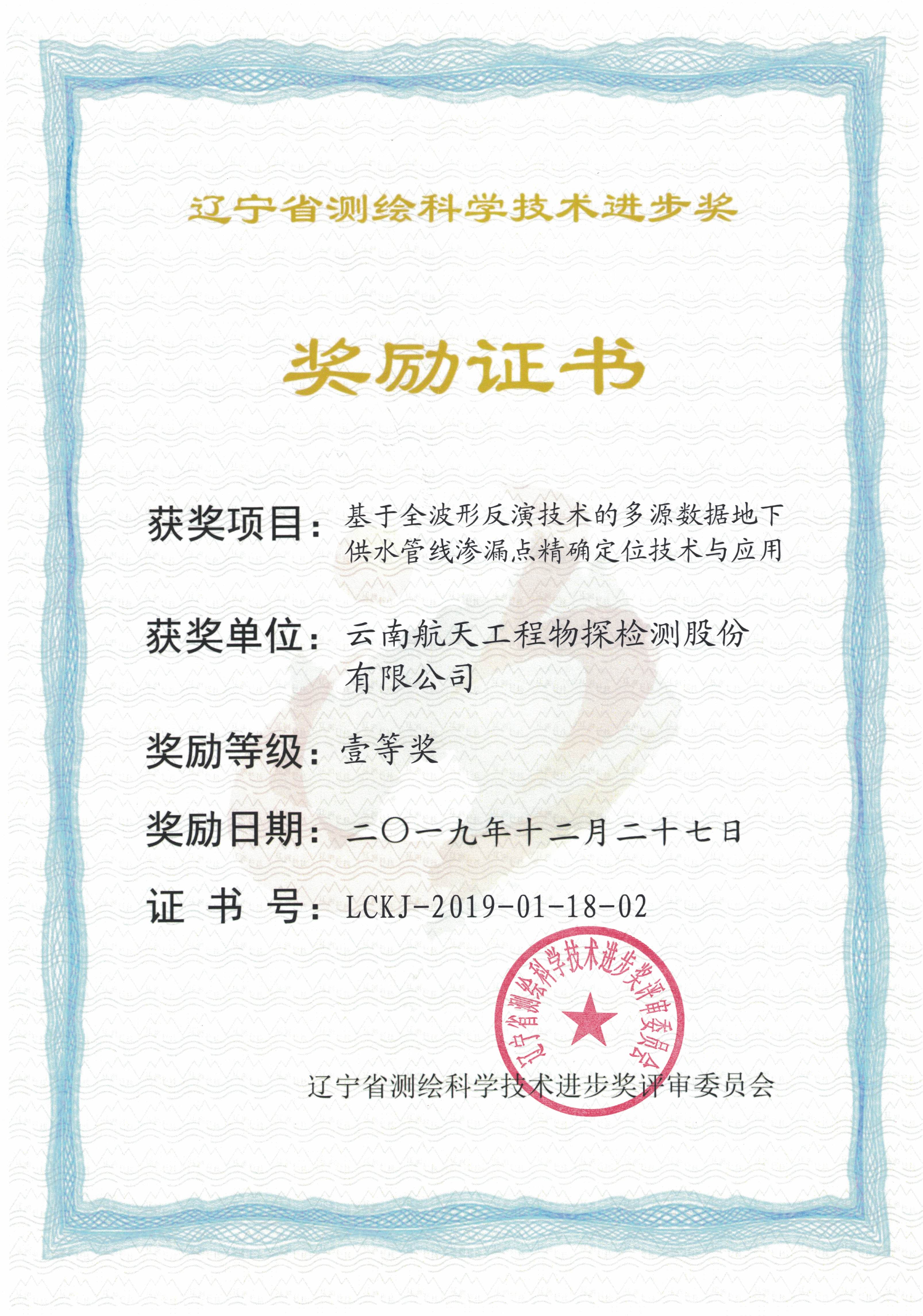 遼寧省測(cè)繪科技進(jìn)步一等獎(jiǎng)