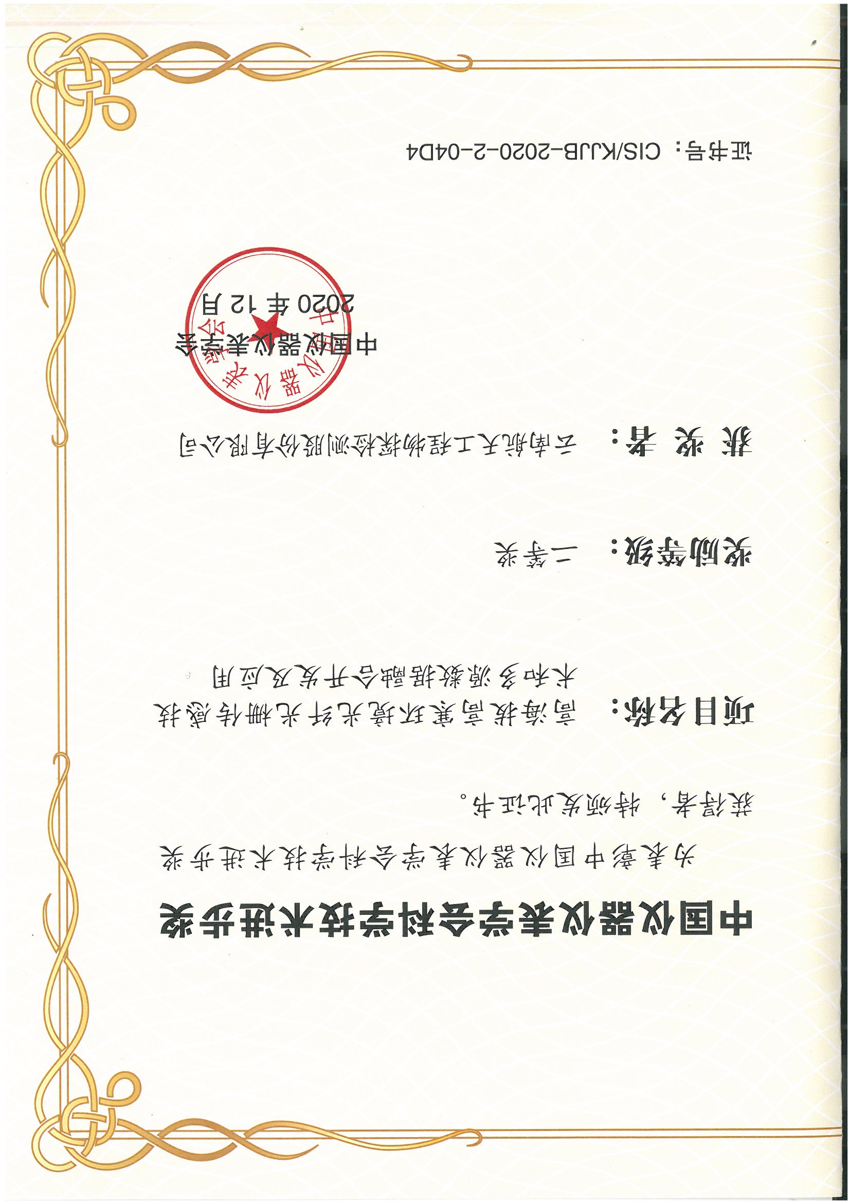 中國儀器儀表協(xié)會(huì)科技進(jìn)步二等獎(jiǎng)
